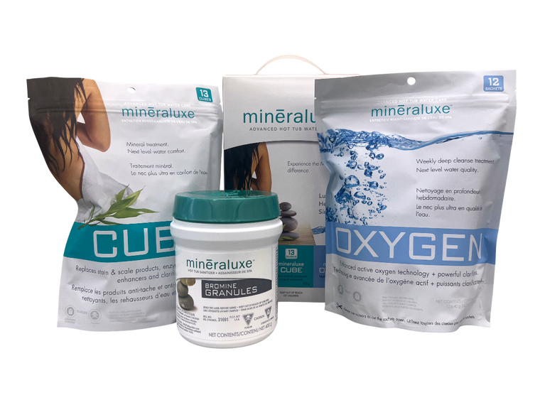 Mineraluxe 3 Month Bromine Granules System is specifically designed for hot tubs to give you a simplified, easy system for maintaining your hot tub water. Based on Bromine sanitization and the main product, " Cube " which replaces other chemicals required for keeping your hot tub water clear. Eliminates the need for scale inhibitors, water clarifiers, and enzymes. Actively repels biofilm that can build up on the hot tub surface and pipes.